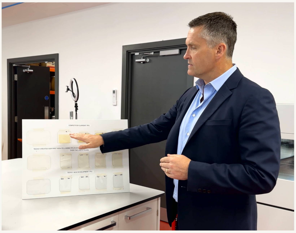 Han bemærkede, at konkurrenterne i branchen blot købte billige materialer fra hylderne fra masseproduktionsanlæg i Fjernøsten, og han identificerede et unikt stødabsorberende materiale her i Storbritannien og indså hurtigt, at det havde et enormt potentiale på tværs af en lang række anvendelser.