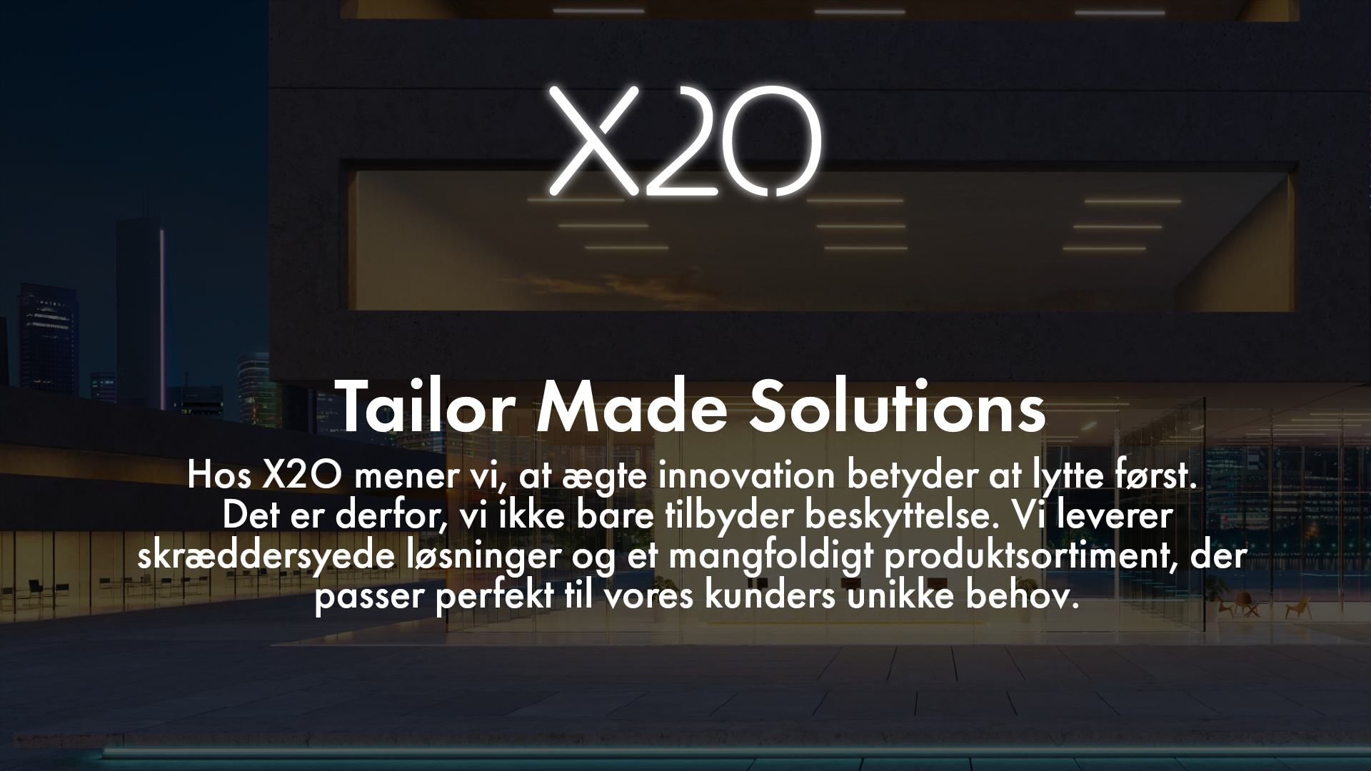 Vores indsats stopper ikke her. I foråret 2026 vil vi præsentere endnu flere produkter under X2O. Alle er nøje udvalgt på baggrund af vores omfattende knowhow. Vores rejse mod at skabe en one-stop-løsning til dig, vores kunde, er kun lige begyndt.