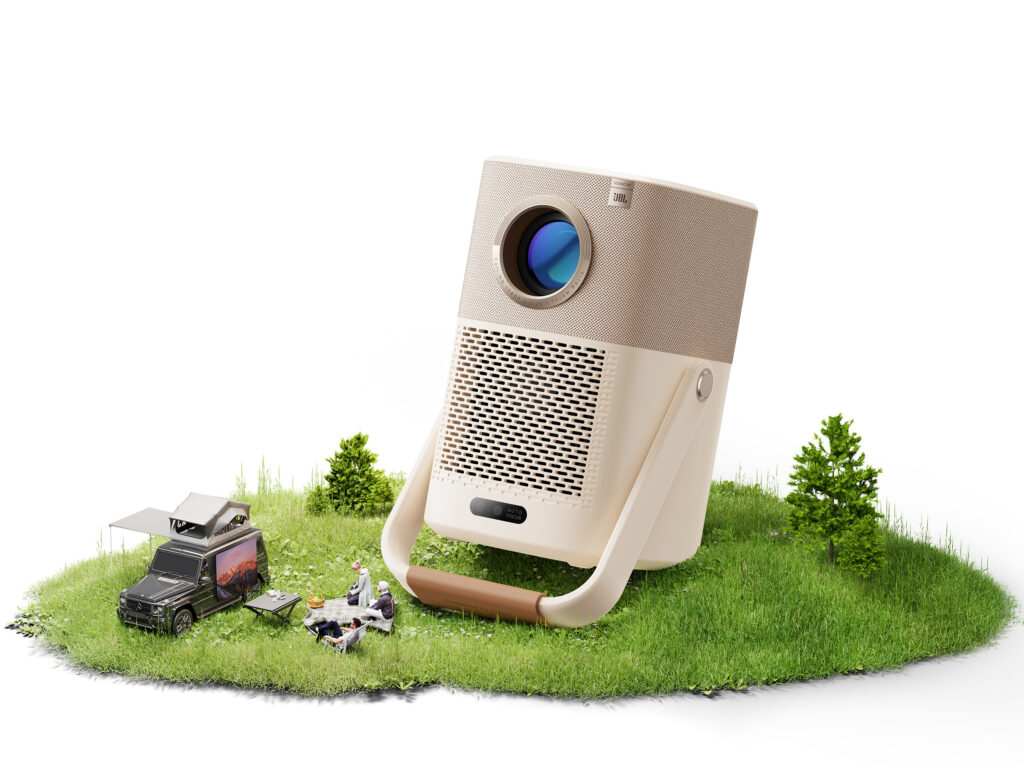 Uendelig sjov med en bærbar projektor. 2,5 timers batterilevetid, JBL-lyd, WiFi6, BT5.0 og 450 ANSI-lumen og 1080p. Perfekt til sportsudsendelser på sommerferiestedet!