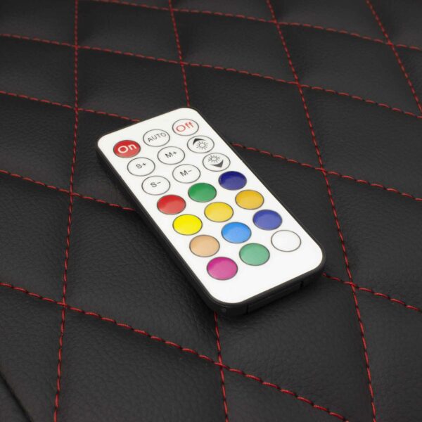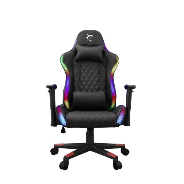 Forbedret med RGB-belysning, 2D-armlæn og hoved-/rygpuder for ultimativ komfort. Det sorte og røde PU-betræk udstråler stil, mens 180° tilbagelæning og justerbare funktioner forbedrer din gaming-oplevelse. Lys dit rum op med RGB-belysning (powerbank medfølger ikke). Slip dit spilpotentiale løs i denne ultimative trone.