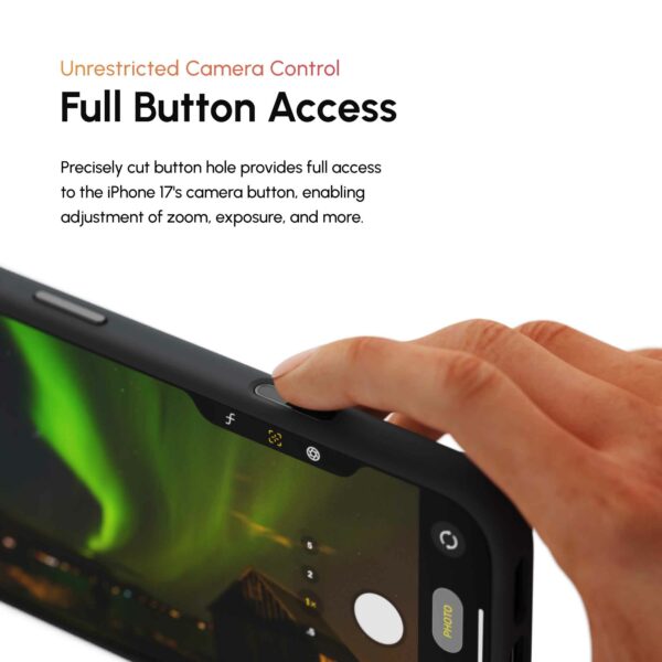 Med en præcist udskåret åbning får du fuld adgang til iPhone 16’s kameraknap. Så du kan fange øjeblikke med præcision og lethed. S.Mount-systemet sikrer desuden problemfri kontrol ved hver optagelse.