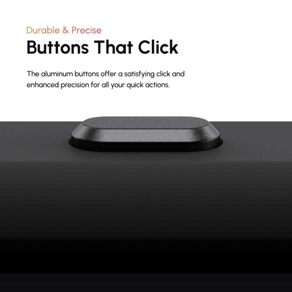 Vores covers har knapper af genbrugt aluminium, som giver en blød og tilfredsstillende klikfølelse. Disse knapper er designet med henblik på holdbarhed og præcision. Derfor får du en forbedret taktil oplevelse til hurtige handlinger.