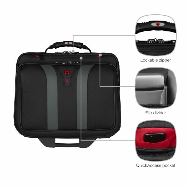 Rummelige rum giver plads til tøj og beskytter din bærbare computer, mens opbevaringsrummet til vigtige ting og dokumentinddelingen holder styr på dine daglige genstande.