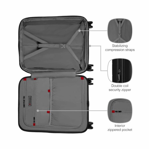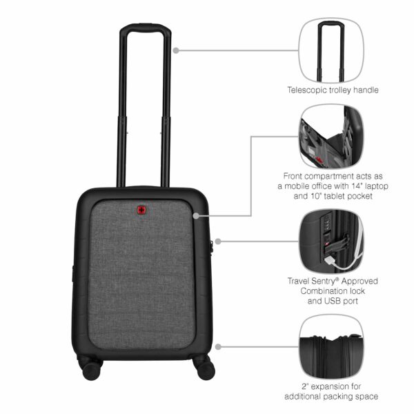 Syntry Carry-On er en robust, men samtidig perfekt transportabel kuffert med hjul, der er meget nem at manøvrere. Det formstøbte forrum opbevarer din bærbare computer og tablet sikkert, mens lommen med hurtig adgang giver hurtig adgang til vigtige genstande. Den er rummelig og sikker takket være kombinationslåsen og sikkerhedslåsen og har også en USB-oplader og integreret ID-lomme.