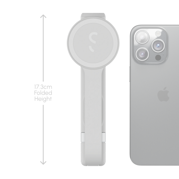 Da den kan trækkes ud til en højde på op til 75 cm, er den den perfekte forlængelse af armen. Den foldbare design gør den lige så kompakt som en iPhone Pro Max.