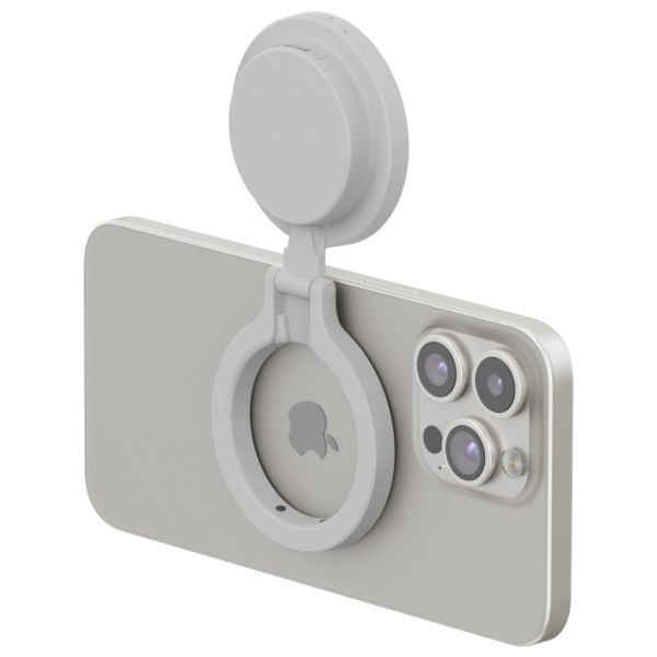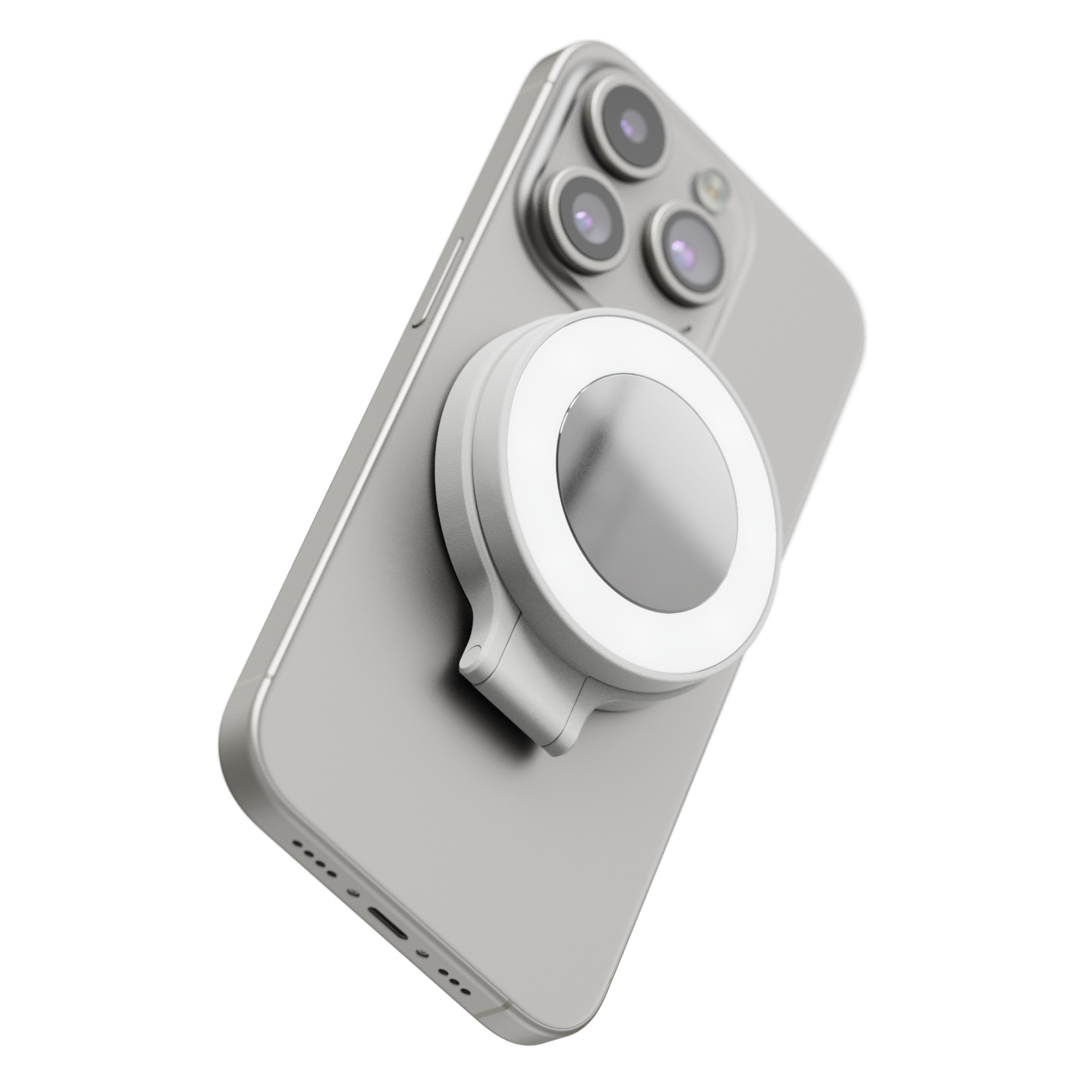 SnapPocket Light – den perfekte ledsager til at løfte dine fotos og videoer. Med 4 justerbare lysstyrkeniveauer og et hængseldesign, der kan svinges op for nemme selfies.