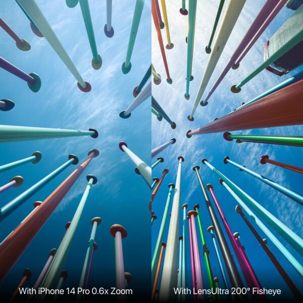 Selvom vidvinkelkameraet på din mobilenhed er praktisk, kan det føles begrænsende i visse situationer. For eksempel resulterer det indbyggede vidvinkelobjektiv ofte i tab af opløsning. Derfor introducerer vi LensUltra 200° fisheye-objektivet, som giver et vidvinkelbillede med en fascinerende cirkulær effekt. Med dette objektiv kan du tage billeder af venner, fremhæve seværdigheder på ferien eller fange omgivelserne med et kreativt twist.