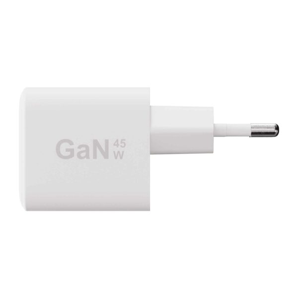 • GaN-teknologi leverer mere strøm i et mindre, køligere og mere effektivt design, hvilket giver dig hurtigere opladning uden den traditionelle opladeres størrelse og overskydende varme.