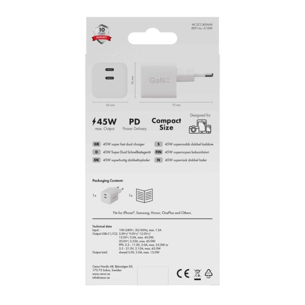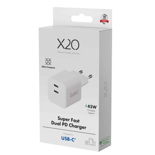 X2O 45W dobbelt oplader USB-C/C GaN hvid