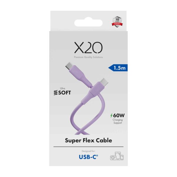 X2O Soft-Touch Silicone Series er et USB-C til C-kabel med blød silikoneovertræk, der ikke vikler sig sammen. Kablerne tilbyder USB 2.0-standard, og takket være deres holdbare ledningskonstruktion, støbte kabinetter og forniklede stik er resultatet et holdbart og brugervenligt kabel.