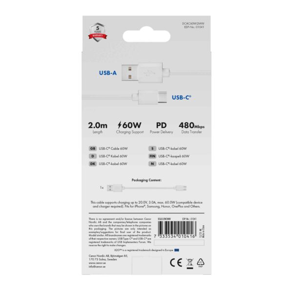 X2O Premium Basic-serien tilbyder den højeste kvalitet og avancerede specifikationer til daglig brug. Den fås i to modeller: USB-A til C og USB-C til C, og i tre forskellige længder: 0,5 m – 1,2 m – 2,0 m.