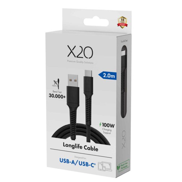 Kablerne er USB 2.0-standard og fås som USB-A -> USB-C (60 W) og USB-C -> USB-C (100 W) i 4 forskellige længder: 0,5 m, 1 m, 2 m og 3 m.