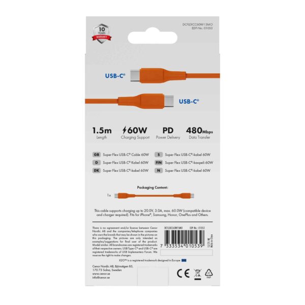 X2O Soft-Touch Silicone Series er et USB-C til C-kabel med blød silikoneovertræk, der ikke vikler sig sammen. Kablerne tilbyder USB 2.0-standard, og takket være deres holdbare ledningskonstruktion, støbte kabinetter og forniklede stik er resultatet et holdbart og brugervenligt kabel.