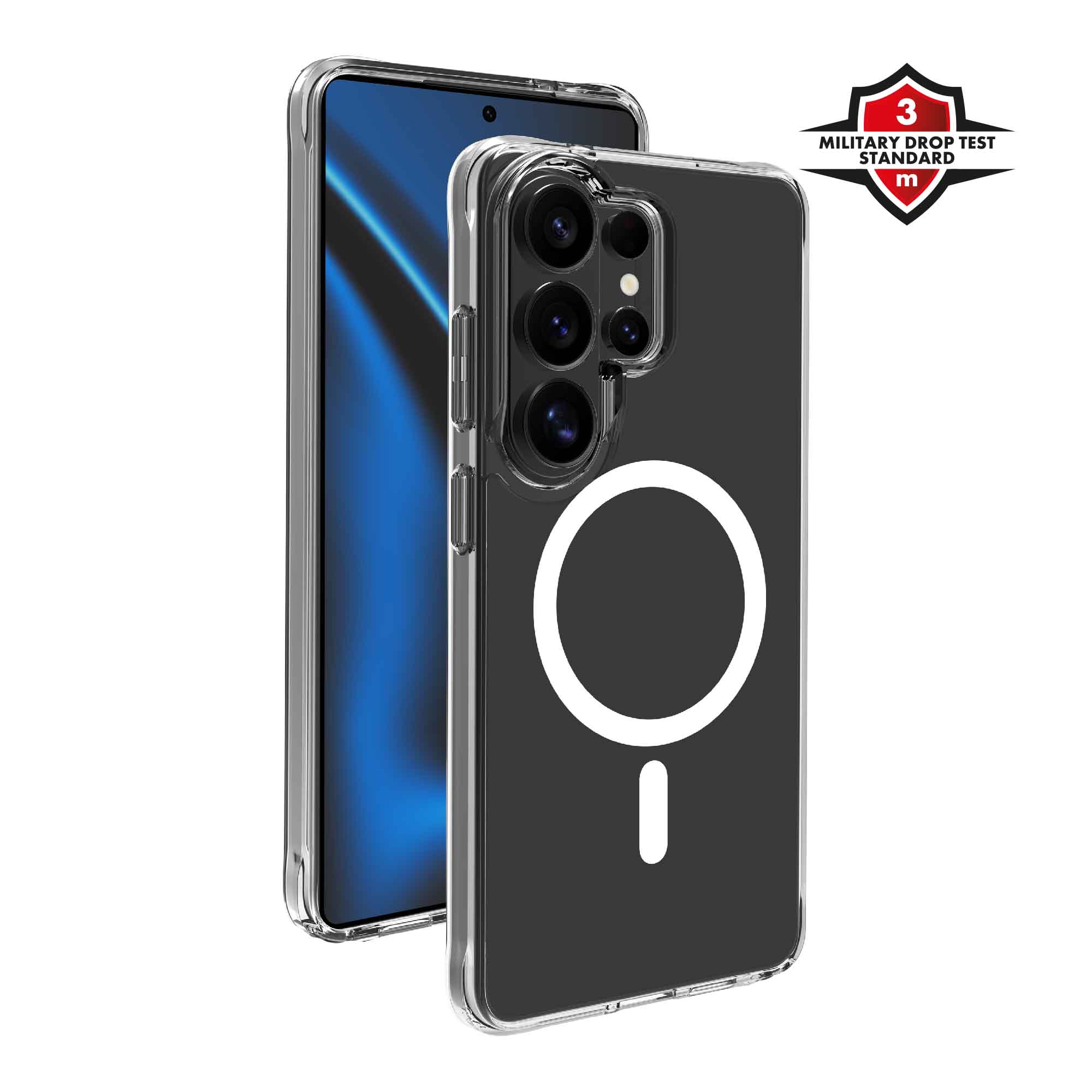 MagClear Cover til optimal beskyttelse af din smartphone. Fuldt gennemsigtigt og holdbart MagSafe®-kompatibelt cover med 3,0 m faldtestcertificering.