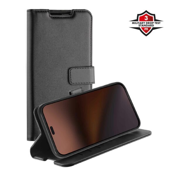 Dette beskyttende cover har tre kreditkortlommer og en stativfunktion for optimal brug i liggende position. Den beskytter din enhed mod stød, ridser og fald op til 3 meter i overensstemmelse med MIL-STD810H-516.8. Det elegante PU-lædermateriale har en høj kvalitet og et flot udseende. Den perfekte pasform gør alle porte og tilslutninger fuldt tilgængelige.
