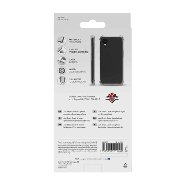 Det helt gennemsigtige hårde cover beskytter din enhed mod fald, stød og ridser ved daglig brug. Coveret overgår militærstandard 1,5 m faldbeskyttelse. Det har en helt gennemsigtig bagside, mens hjørnerne har stødabsorberende forstærkninger. Coverets design giver fuld adgang til alle porte og enhedsforbindelser.