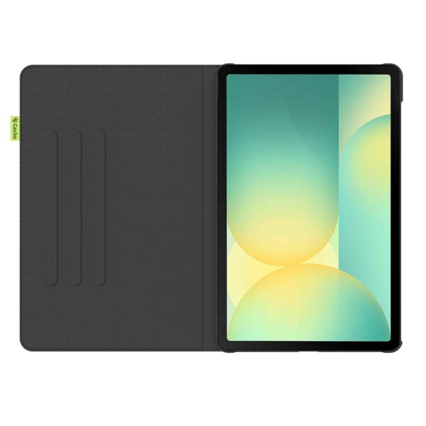 Du skal blot klikke din tablet ind i det robuste etui og beskytte den hele vejen rundt. Kaktuslæder er smidigt, blødt og åndbart, men også overraskende stærkt og holdbart. Takket være sin tætte struktur er kaktuslæder modstandsdygtigt over for fugt, snavs og fedt. Indersiden af etuiet er foret med blødt mikrofiber, som beskytter din skærm mod ridser og stød.