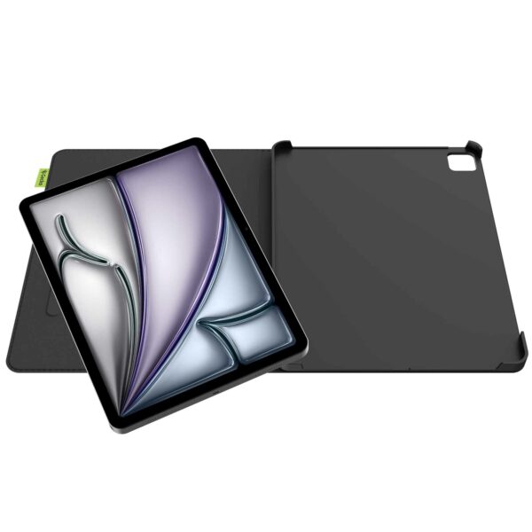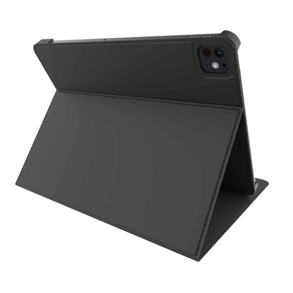Etuiet giver dig mulighed for at placere din iPad i tre forskellige positioner. Vælg den perfekte betragtningsvinkel til videosamtaler, rulning eller visning af din yndlingsserie. Takket være det gennemtænkte design er knapperne, opladningsporten og kameraet stadig tilgængelige.