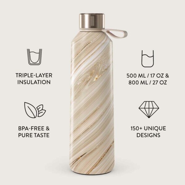 Dyk ned i et hav af valgmuligheder med over 150 unikke BURGA-designs, som hver især er parret med en af tre slanke hætter i rustfrit stål – gunmetal, rosaguld eller sølv. Vores team matcher omhyggeligt hætten med designet, så du altid får en flaske, der er ubesværet stilfuld.
