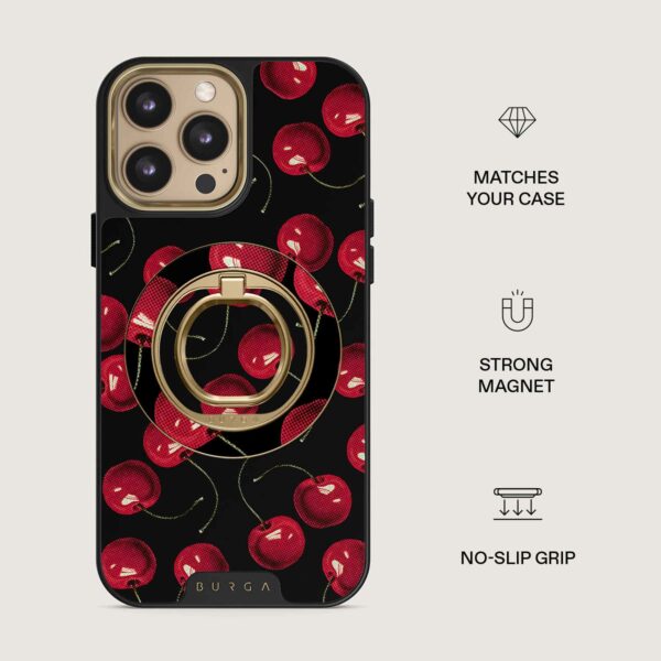 Denne magnetiske mobilring fastgøres med et tilfredsstillende klik – uden lim og uden besvær. Hold den, når du vil rulle med én hånd, brug den som en praktisk holder, når du vil se uden at bruge hænderne, eller som et stilfuldt tilbehør, der passer perfekt til din BURGA-etui.