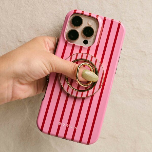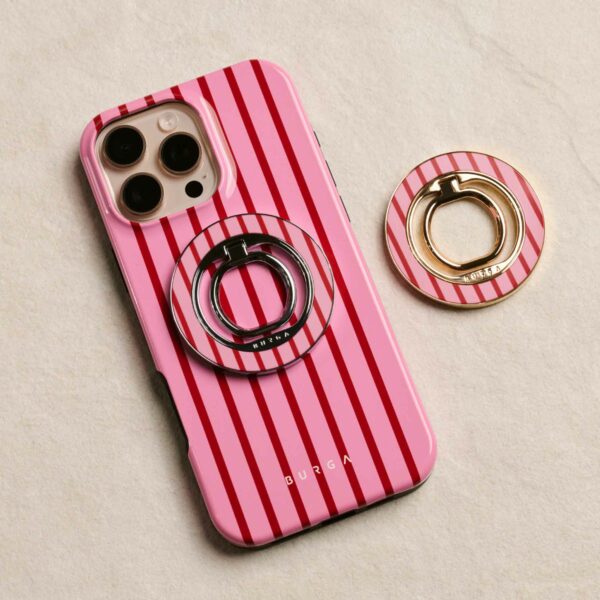 Denne magnetiske mobilring fastgøres med et tilfredsstillende klik – uden lim og uden besvær. Hold den, når du vil rulle med én hånd, brug den som en praktisk holder, når du vil se uden at bruge hænderne, eller som et stilfuldt tilbehør, der passer perfekt til din BURGA-etui.