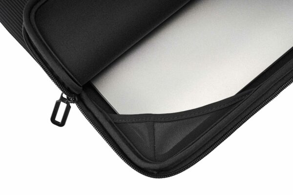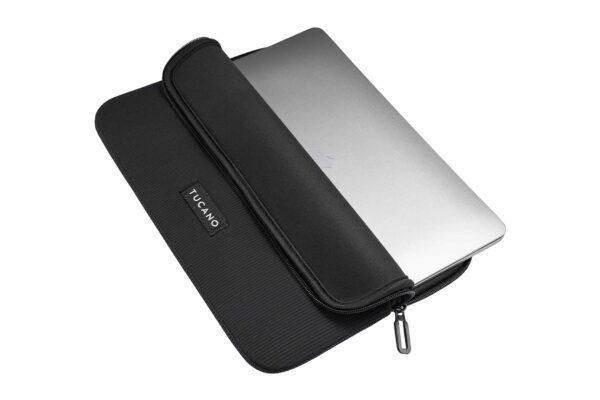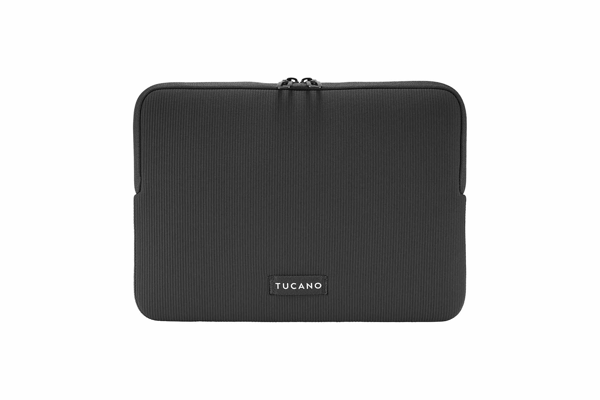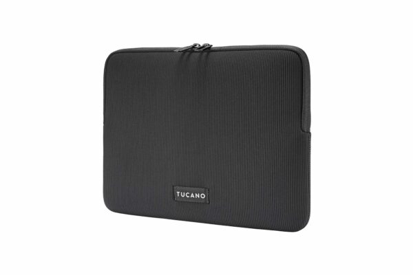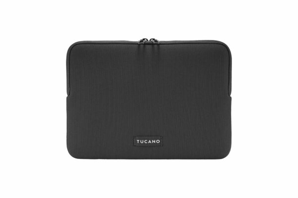 Neopren-sleeve med stribet mønster, designet til bærbare computere og MacBooks. Den 4 mm tykke struktur garanterer fremragende beskyttelse og bevarer samtidig et ultratyndt profil takket være flatlock-sømme. Udstyret med Anti-Slip System®, en elastisk indsats, der forhindrer ridser og glidning. Den indvendige beskyttende kant giver ekstra beskyttelse, mens den dobbelte lynlås gør den nem at åbne. Logoet, der er trykt på en midtersyet etiket, tilføjer et karakteristisk design og personlighed. Delvist fremstillet af genanvendt plast.