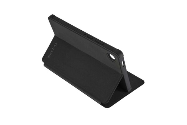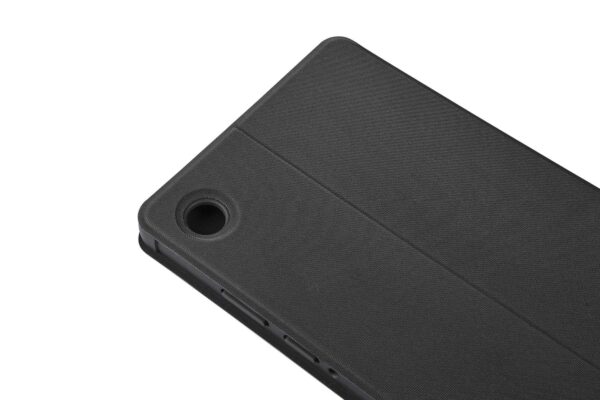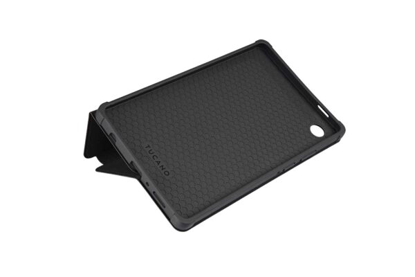 Miljøvenlig cover til Samsung Galaxy Tab, i nylon-look PU, fremstillet af genbrugsplast. Indersiden er foret med et blødt, ridsefast materiale, og den indvendige bagside, som har en åbning til kameraet, er fremstillet af blødt, beskyttende TPU. Forsiden kan også omdannes til et praktisk stativ, der er ideelt til at skrive og læse. Der er et udvendigt rum til S Pen. Tre 500 ml plastflasker er blevet genanvendt til fremstilling af dette cover.