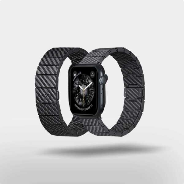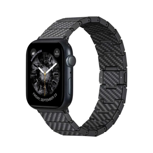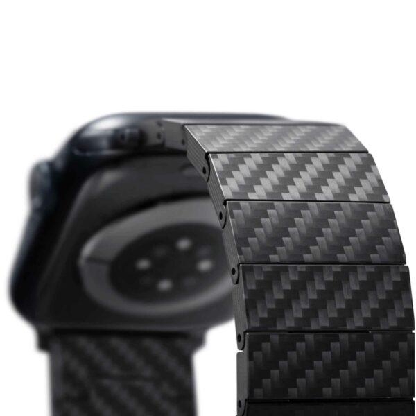 Verdens første urrem med led fremstillet af 100 % kulfiber, der er kompatibel med alle Apple Watch-modeller, inklusive Series 11-1, SE3/SE og Ultra 3/Ultra 2/Ultra.