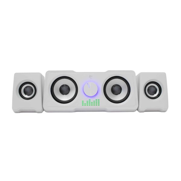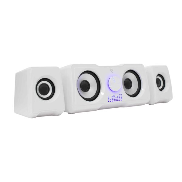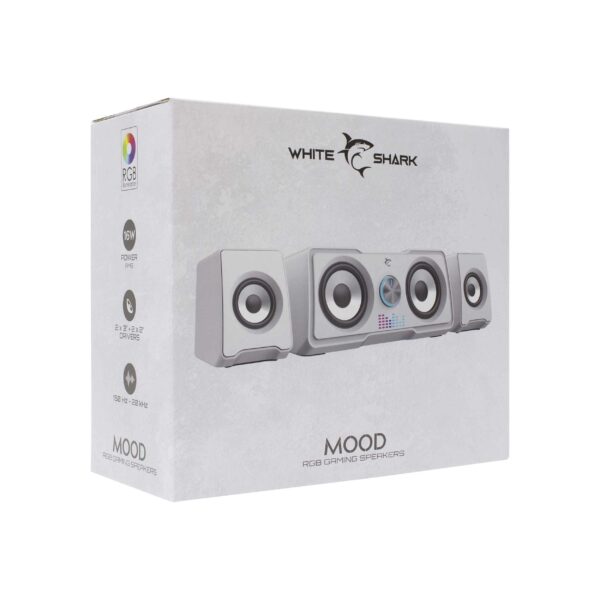 Strømforsyning via USB 2.0 og 3,5 mm lydgrænseflade. De kompakte, men kraftfulde 910 g højttalere redefinerer dine høresanser. Lad MOOD serenere din verden med glans.