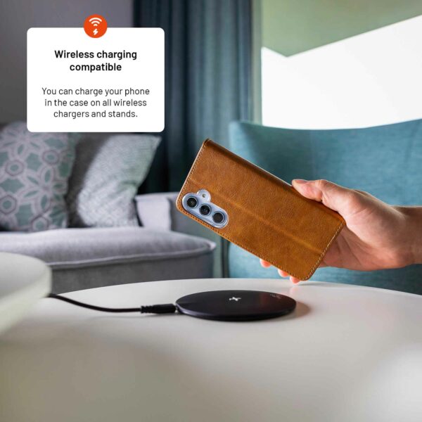 Opus-etuiet er lavet af slidstærkt syntetisk læder, der kan modstå selv hårdhændet behandling og samtidig bevare et stilfuldt udseende. Takket være det slanke design øger etuiet kun telefonens dimensioner en smule og passer derfor komfortabelt i lommen eller håndtasken.