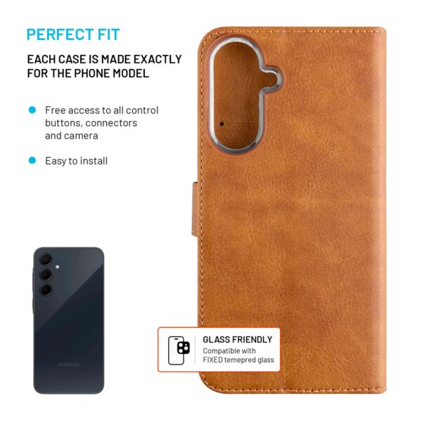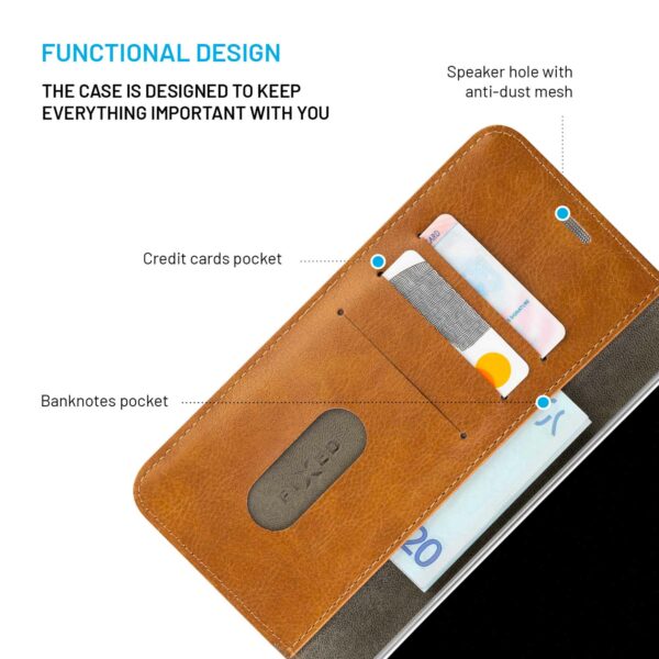 Det nye elegante design af FIXED Opus-tegnebogscoveret beskytter din smartphone mod alle hverdagens farer. Det er designet præcist til den aktuelle telefonmodel og dækker alle dele, inklusive skærmen.