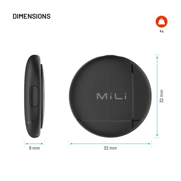 Strømforsyningen leveres af et udskifteligt CR2032-batteri med en levetid på op til 12 måneder, så du ikke behøver at bekymre dig om at oplade det ofte. Lokalisatorens lette og kompakte krop er lavet af holdbart plast, der kan modstå normal håndtering. Samtidig er den diskret og kan placeres hvor som helst uden at være i vejen.