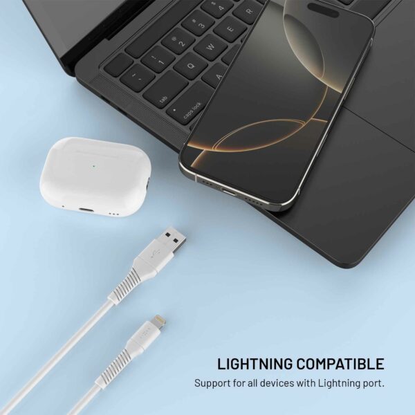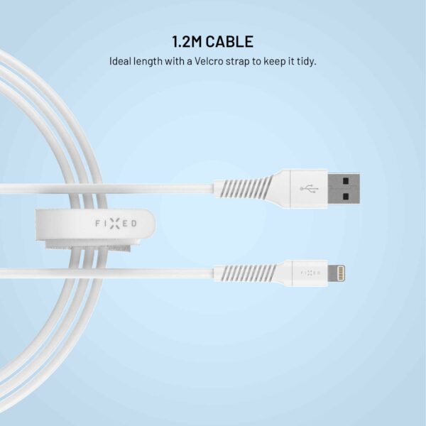 FIXED-data- og opladerkablet med USB-A- og Lightning-stik er et pålideligt tilbehør til din Apple-enhed. Det bruges til at oplade en iPhone eller iPad med et Lightning-stik med maksimal hastighed, samtidig med at det håndterer alle dataoverførsler med en hastighed på 480 Mbps.