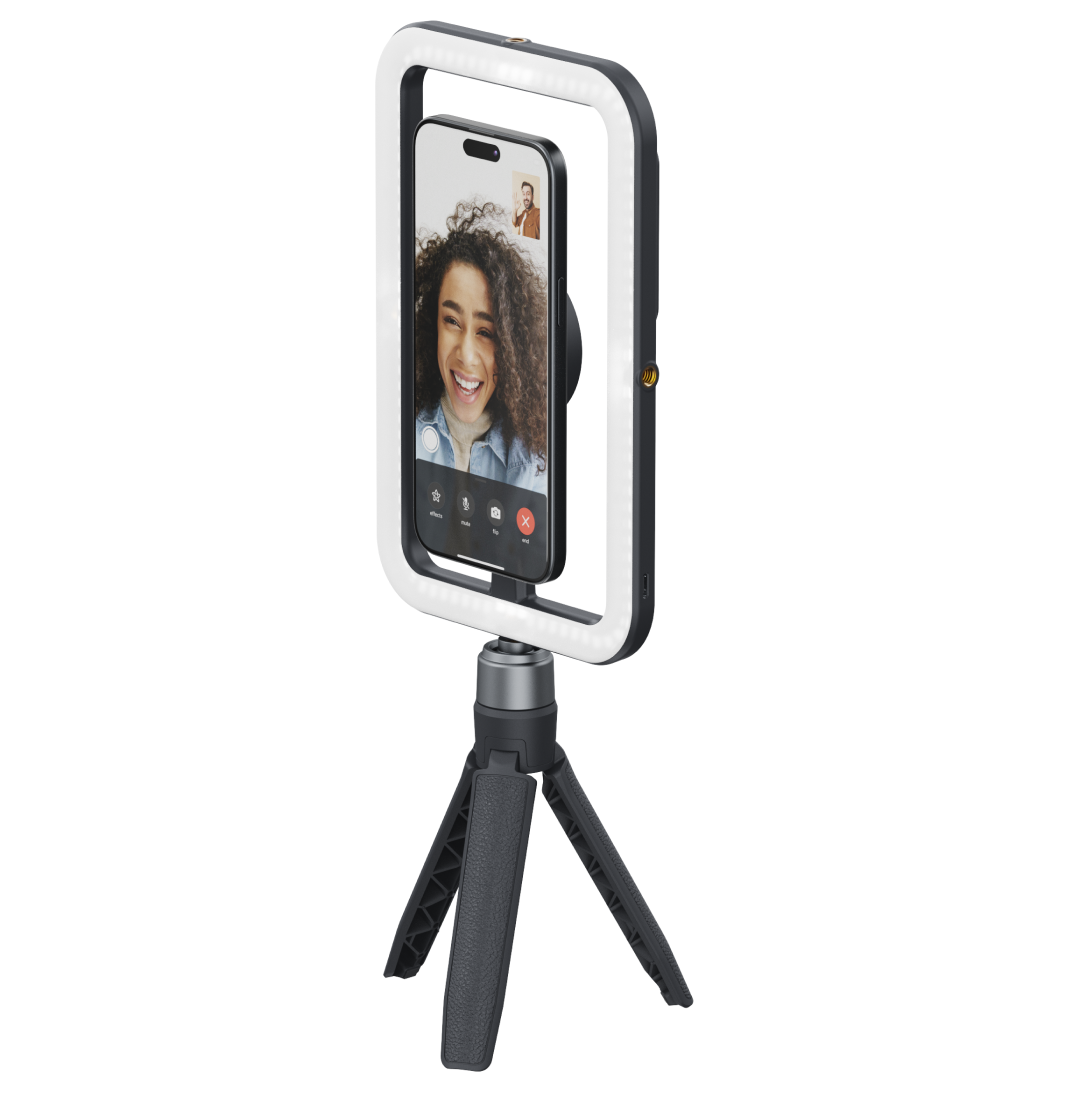 Da SnapStudio Light er 38 % mindre end en almindelig ringlampe, er den nem at tage med overalt. Den kompakte størrelse gør det nemt at sætte lyset op, uanset hvor du befinder dig.