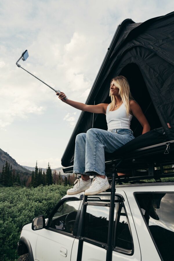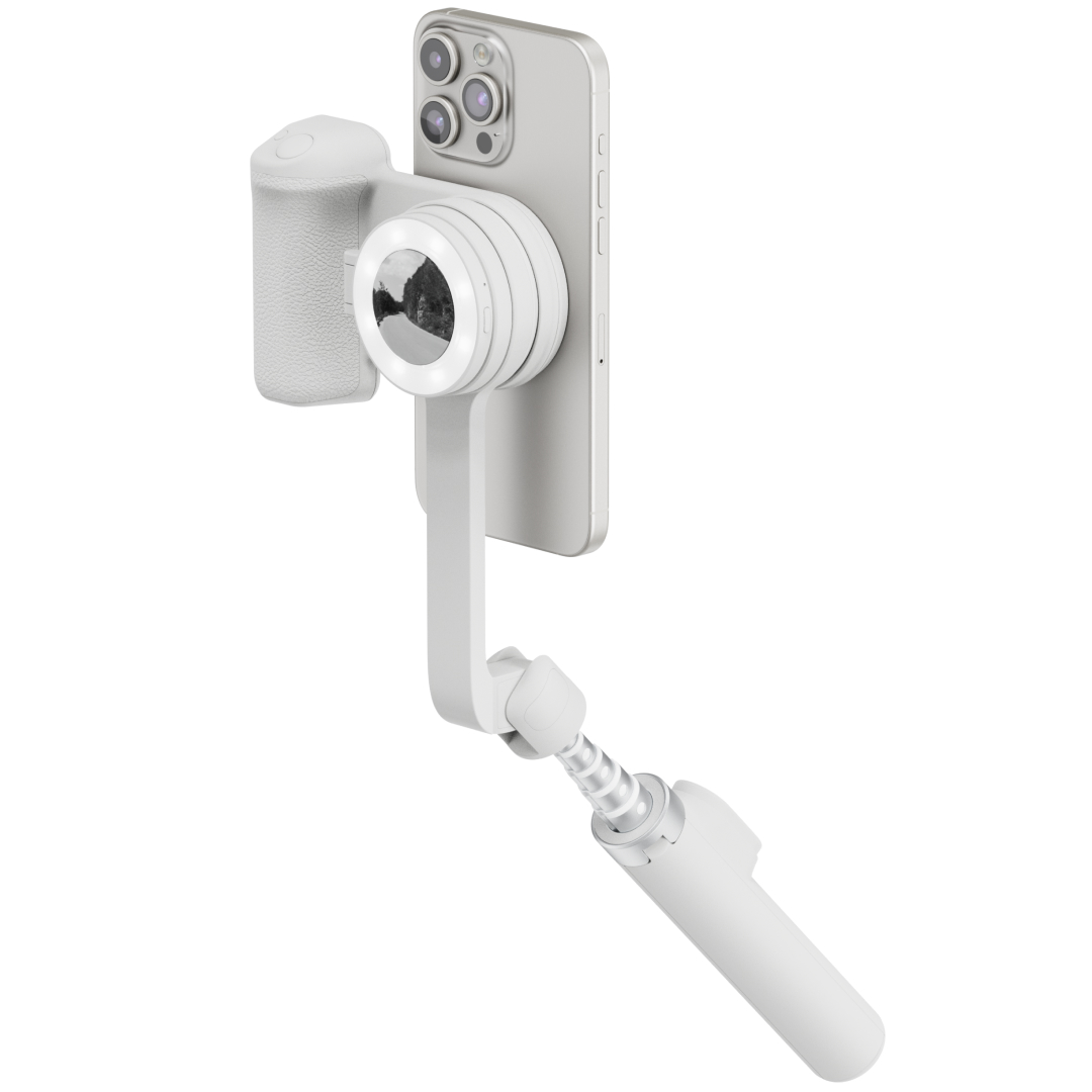 SnapStand Selfie kan forlænges op til 75 cm for at opnå den perfekte vinkel og foldes sammen til lommestørrelse. Skift mellem håndholdt og håndfri tilstand til optagelse, videosamtaler eller gruppefotos.