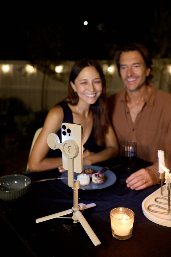 SnapGrip Essential fungerer også som et magnetisk stativ. Du kan også dreje din telefon for at optage i portræt- eller landskabstilstand eller sætte den oprejst for håndfri vlogging, videosamtaler og selfies.