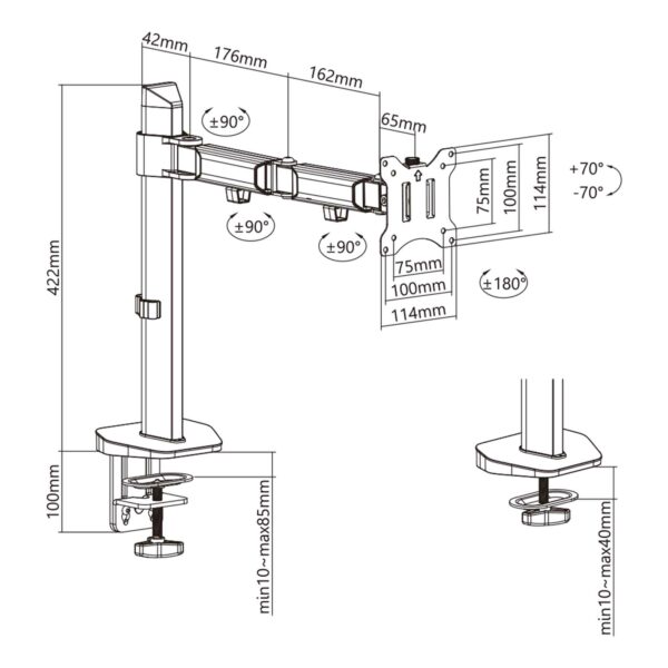 Forbedr din gamingstation med dette bordstativ. Med en robust arm på 380 mm er det designet til skærme mellem 17 og 32 tommer. Drej, vip og roter nemt med en fleksibilitet på +90° til -90°. Velegnet til buede skærme og kan bære op til 9 kg pr. skærm.