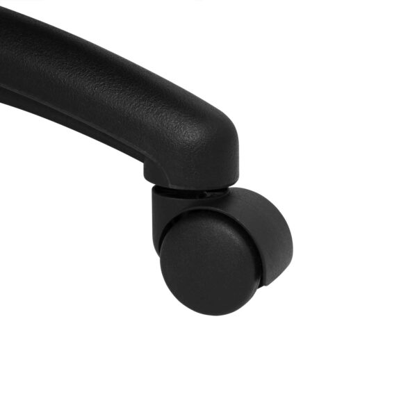 Nyd faste armlæn, pneumatisk sædehøjdejustering og jævn glidning på 50 mm nylonhjul. Det elegante sorte PVC-betræk over krydsfinerrammen garanterer holdbarhed og stil.