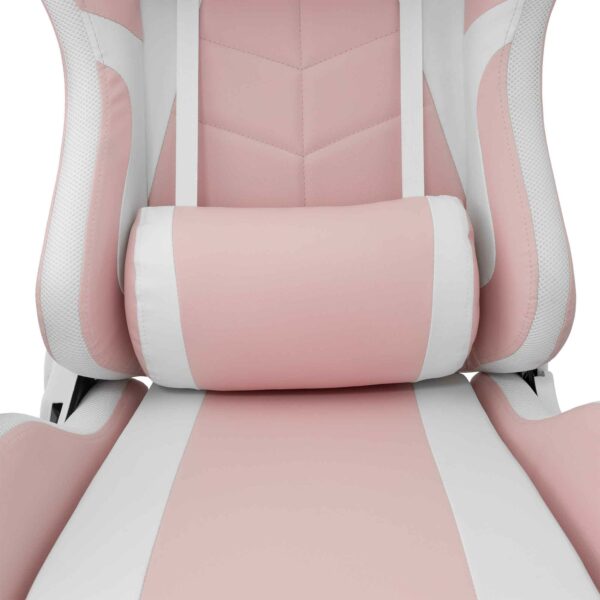 Få øget komfort med 1D-armlæn, justerbar hældningsvinkel og et hældningsområde fra 90° til 180°. Det ergonomiske design, komplet med hoved- og rygpuder, giver støtte under intense gaming-sessioner. Med et elegant lyserødt og hvidt farveskema, PU-betræk og robust metalramme tilføjer ROXY stil til dit udstyr. Installer den ultimative gaming-stol og erob alle virtuelle verdener.