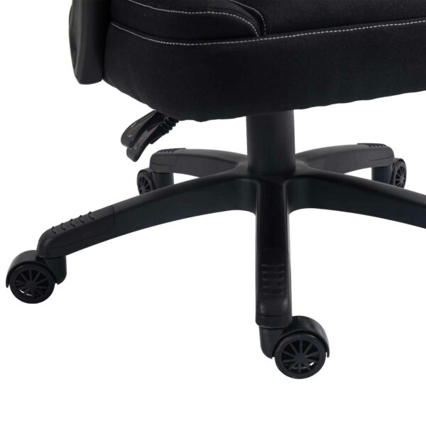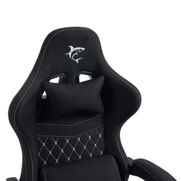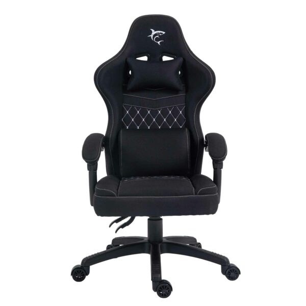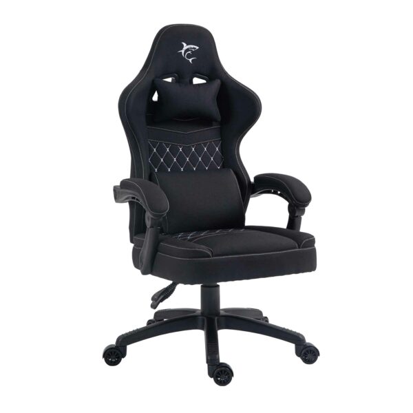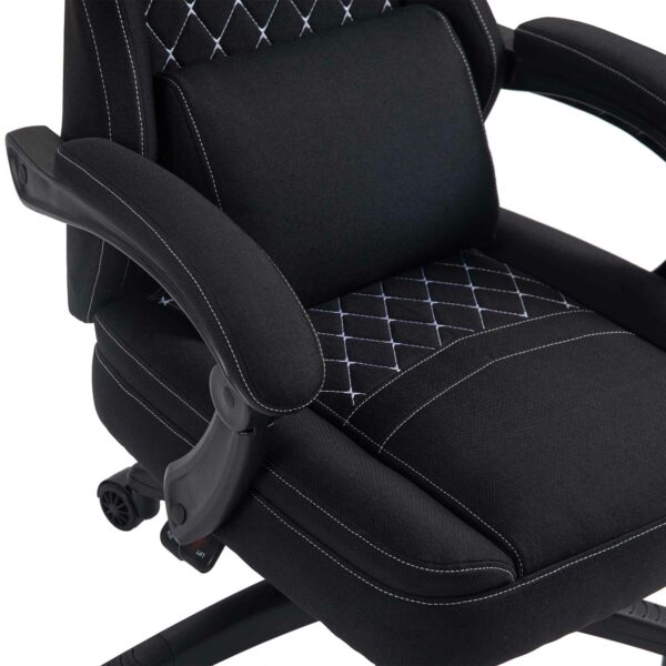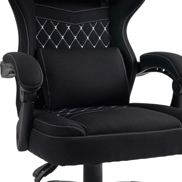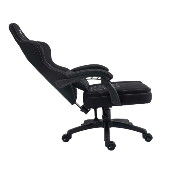 Med justerbare armlæn, vippelås og hoved-/rygpuder er den skræddersyet til lange gaming-sessioner. Det elegante sorte design med en robust metal- og træramme passer ind i ethvert miljø.