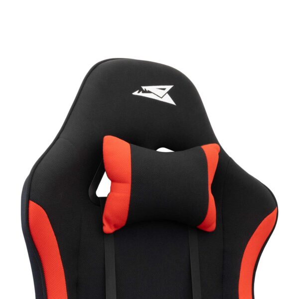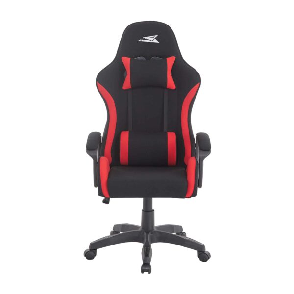 Med blødt stofbetræk og støttende hoved- og rygpuder er den skabt til lange gaming-sessioner eller produktive arbejdsdage. Den robuste konstruktion og det markante røde og sorte design tilfører både stil og funktionalitet til dit arbejdsområde.