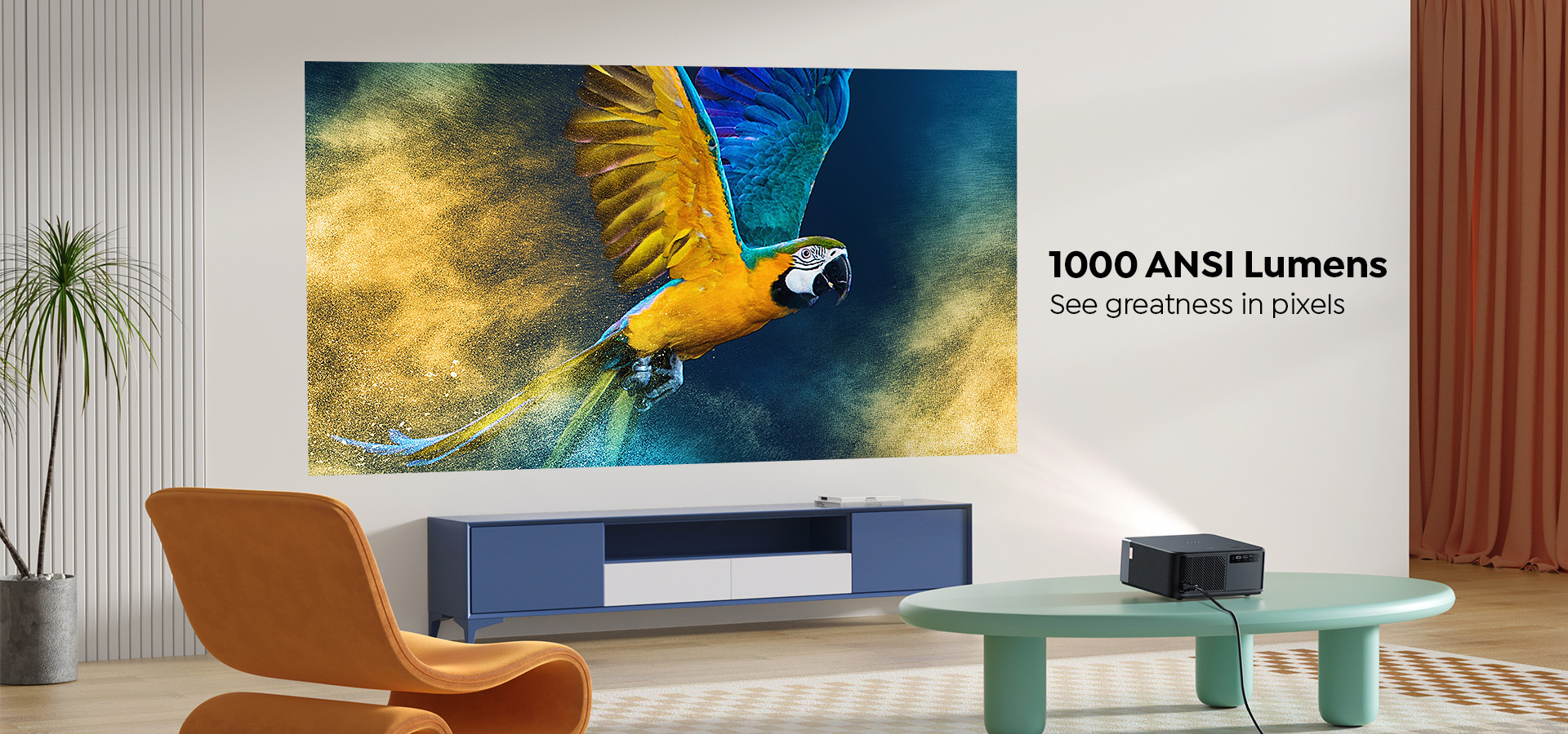 Med en skærmopløsning på 1080p 60Hz og en lysstyrke på 1000 ANSI Lumen* leverer Yaber K2 smart-projektoren forbløffende klare og levende billeder, hvilket gør den ideel til en række anvendelser, fra hjemmeunderholdning til virksomhedspræsentationer.