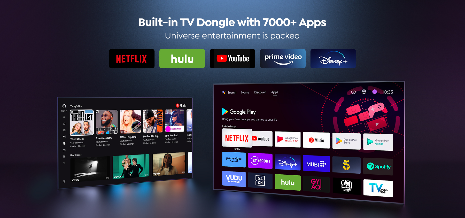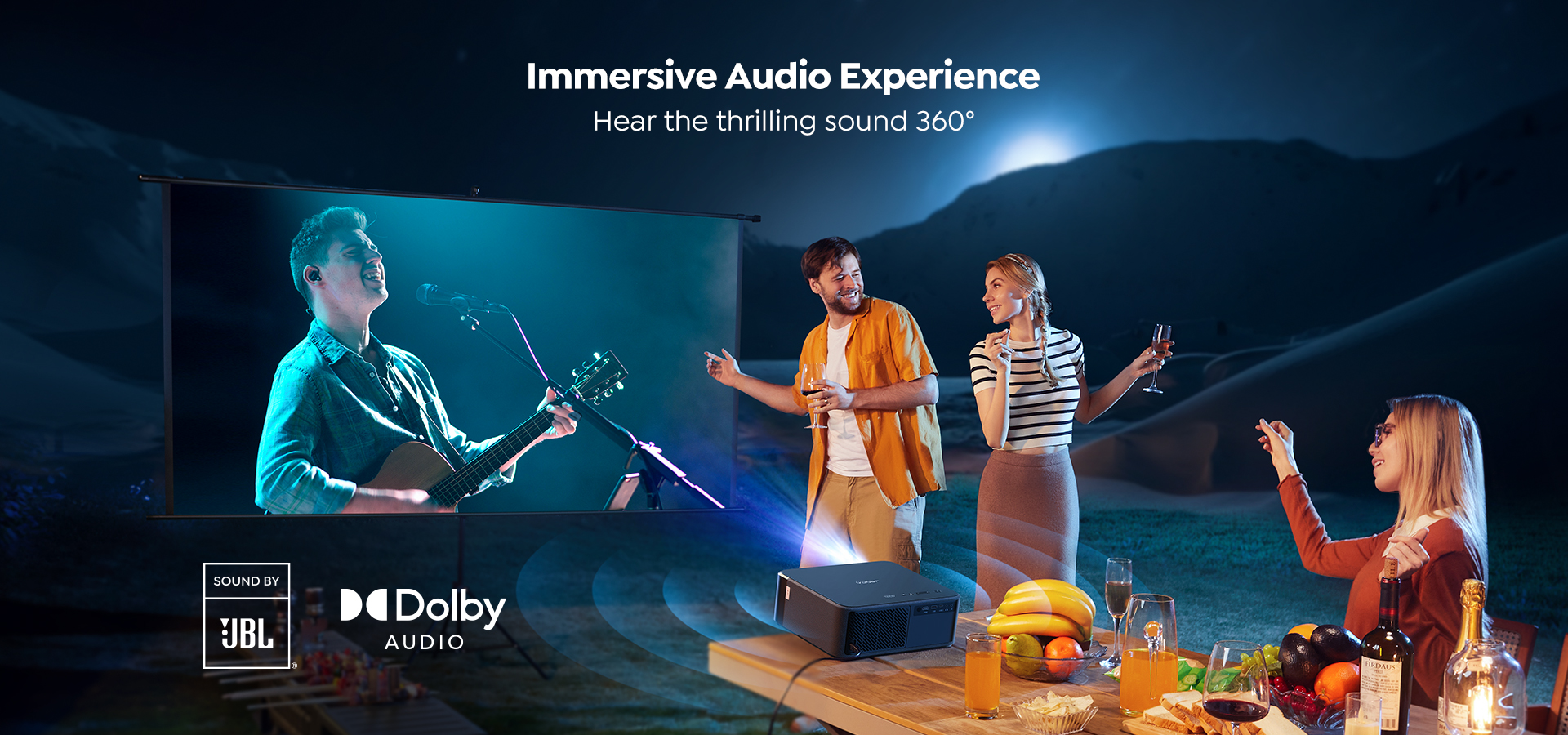 De to 10W JBL-stereohøjttalere med Dolby-understøttelse leverer lyd i høj kvalitet som supplement til de fantastiske billeder, hvilket giver en fordybende og filmisk oplevelse og en kraftfuld lyd.
