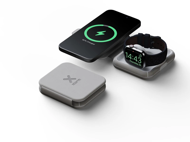 Sammenfoldelig trådløs rejseoplader 2i1 15W Hvid